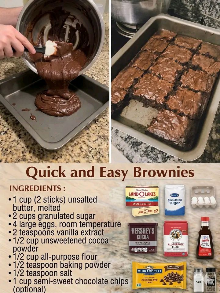 Here’s a simple, easy brownie recipe using cocoa powder — fudgy, chocolatey, and quick to make: