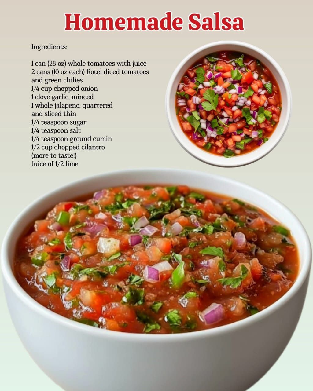 Absolutely! Here’s a classic tomato salsa recipe — fresh, zesty, and super versatile. You can make it chunky or smooth, spicy or mild — perfect for chips, tacos, grilled meats, or breakfast eggs.